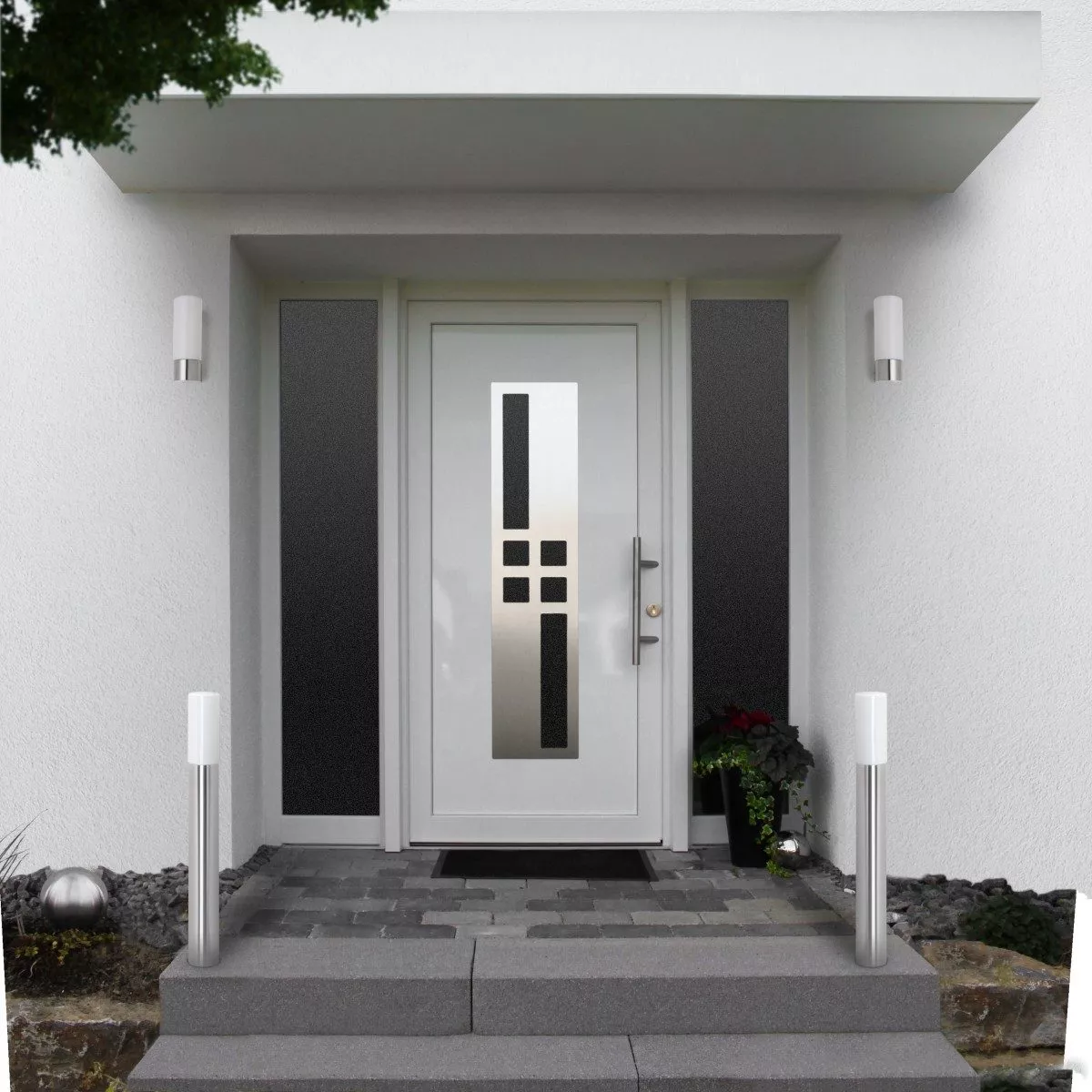 Das satinierte Opalglas sorgt für eine diffuse Lichtverteilung, die den gewünschten Bereich, wie zum Beispiel die Hofeinfahrt oder den Eingangsbereich, weich ausleuchtet. Mit einer Gesamthöhe von 90 cm bietet die Leuchte eine optimale Höhe für die Beleuchtung von Wegen und Einfahrten.
