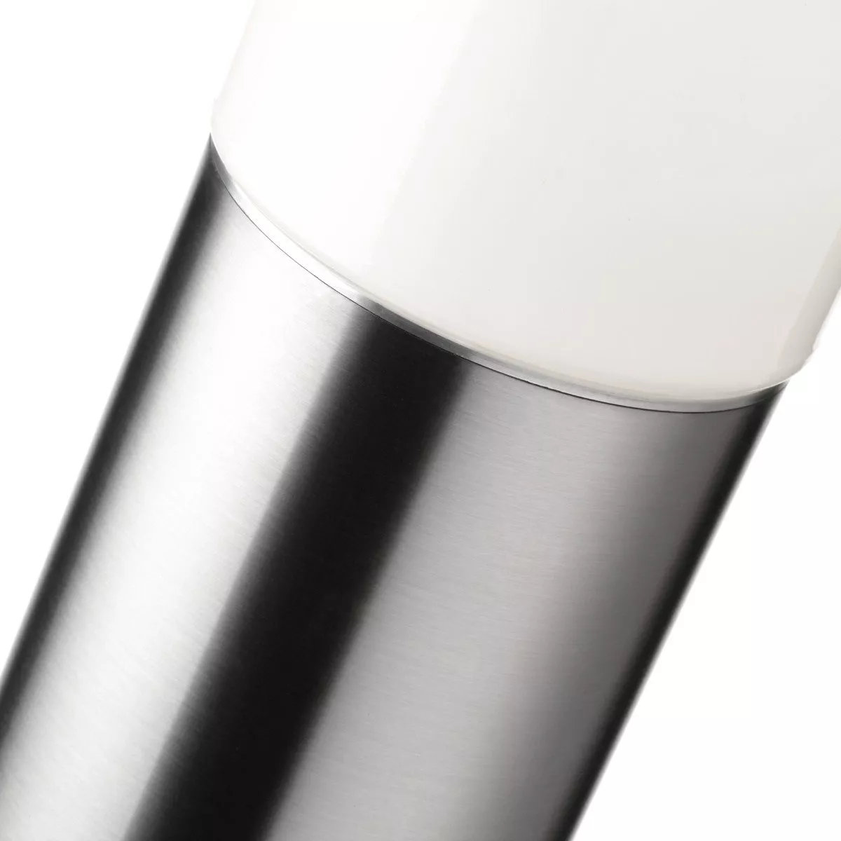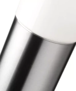 Der runde Leuchtenfuß der Aqua Polo ist aus rostfreiem und fein gebürstetem Edelstahl gefertigt, was ihr eine elegante und zeitlose Optik verleiht. Das weiße Opalglas der Leuchte sitzt am oberen Ende der Säule und hat einen Durchmesser von 11 cm. Die Pollerleuchte verfügt über die Schutzart IP44 und ist daher vor allseitigem Spritzwasser geschützt.