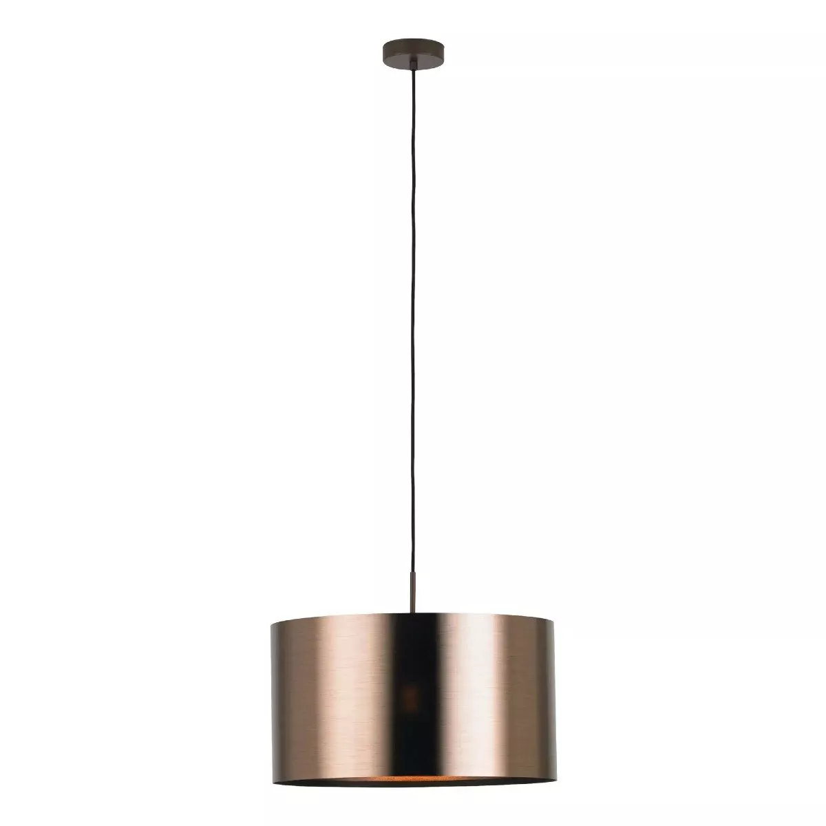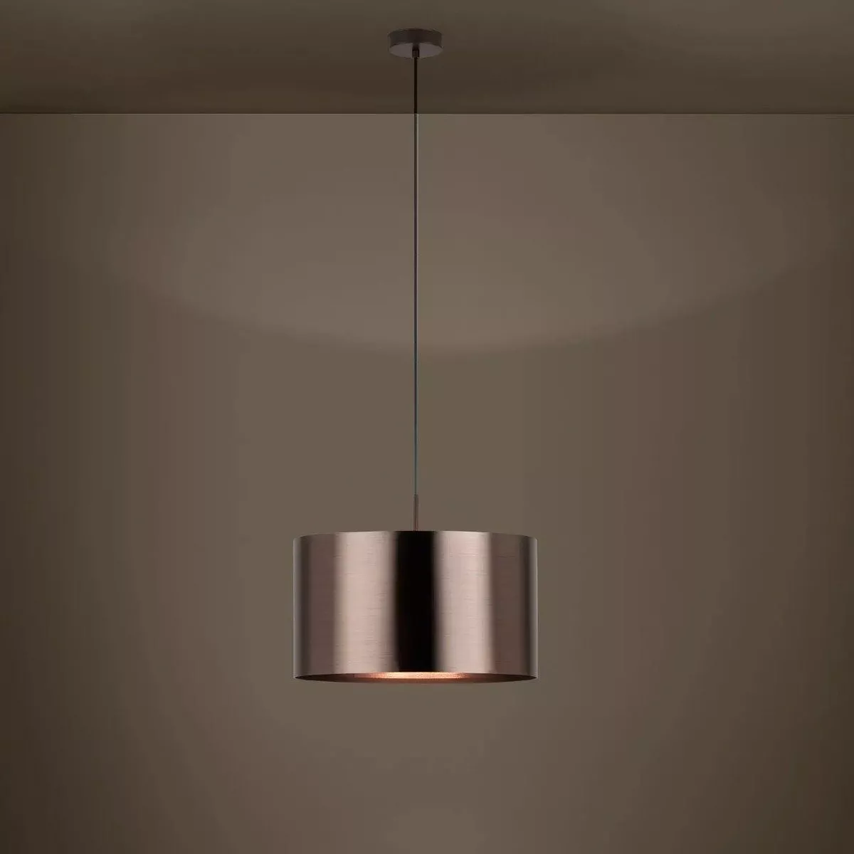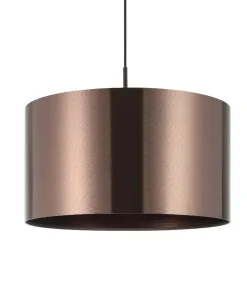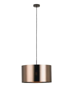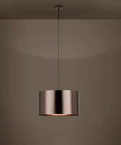 Die Pendelleuchte Saganto 1 punktet mit ihrem modernen, minimalistischen Design, das sowohl in Esszimmern als auch in Wohnzimmern für einen Blickfang sorgt. Der braune Lampenschirm mit einer Innenseite in Kupfer verleiht jedem Raum eine warme Atmosphäre. Mit ihrem Schirmdurchmesser von 45 cm eignet sie sich hervorragend als Beleuchtung über Esstischen oder Couchtischen. Die Lichtverteilung erfolgt sowohl nach oben als auch nach unten, was für eine angenehme, ausgewogene Beleuchtung sorgt.
