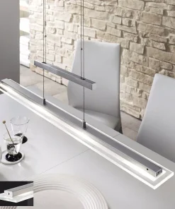 Das geradlinige und moderne Design der Pendelleuchte Tenso TW lässt mühelos zu jedem Einrichtungsstil kombinieren. Mit einer Aufhängung in Nickel matt und Chrom sowie einem satinierten Glas ist sie der Hingucker in Ihrem Zuhause. Die Pendellampe Tenso TW hat eine Länge von 88 cm und eine Breite von 6 cm, ein zusätzliches Plus ist die verstellbare Höhe von 90 bis 150 cm. Die Leuchte hat einen Abstrahlwinkel von 119° und wird inklusive 4x 4,7 Watt LED-Leuchtmittel geliefert, diese sind über Tastdimmer stufenlos dimmbar. Im Gegensatz zu der Tenso Pendelleuchte, kann man bei der Tenso TW über einen zweiten Tastdimmer, direkt an der Leuchte die Lichtfarbe von 3000 bis 6500 Kelvin einstellen.