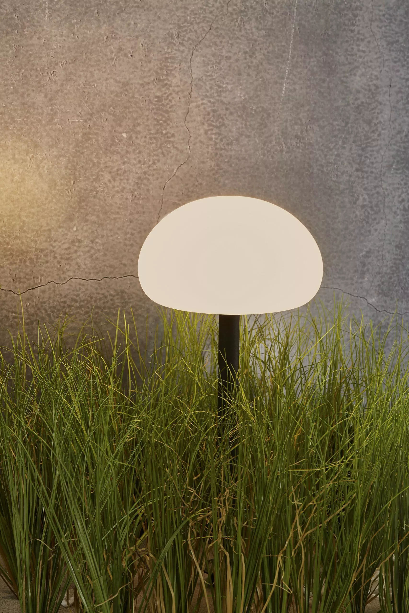 Die Sponge Spike 15 ist ein ganz schön raffiniertes Teil! Mit der Sponge hat der dänische Leuchtenhersteller Nordlux eine flexible Akku-Außenleuchte geschaffen, die Sie immer dort platzieren können, wo Sie sie gerade benötigen. Denn die Sponge, Namens- und Designgeber sind Pilze auf dem Waldboden, funktioniert kabellos. Der leistungsstarke Akku hält bei Dauerbetrieb auf höchster Stufe bis zu 5 Stunden, auf niedrigster Stufe sogar bis zu 16 Stunden. Aufladen können Sie die Akkulampe über das mitgelieferte USB-Kabel an jeder handelsüblichen Steckdose.