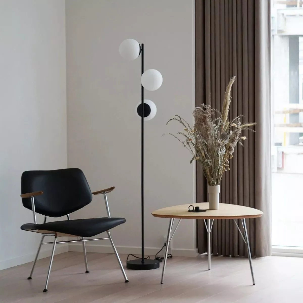 Die Stehleuchte Lilly von Nordlux ist eine charmante Kombination aus Schlichtheit und clean-moderner Eleganz. Die Stehlampe besteht aus einem minimalistischen schwarzen Metallgestell und drei Schirmen aus mundgeblasenem Opalglas, die ein blendfreies, harmonisches Stimmungslicht verbreiten.