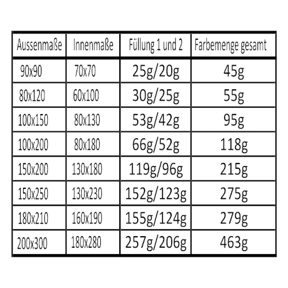 Die benötigte Farbmenge für die Ersttränkung hängt von der Kissengröße ab.